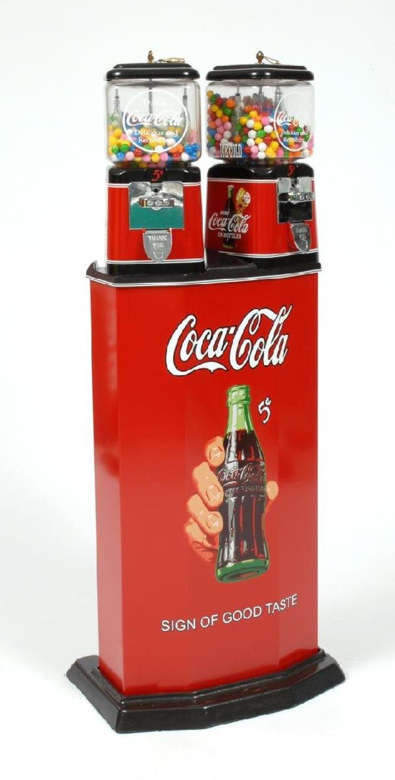 Coca Cola base with 2 gumball machines, Oak Mfg.