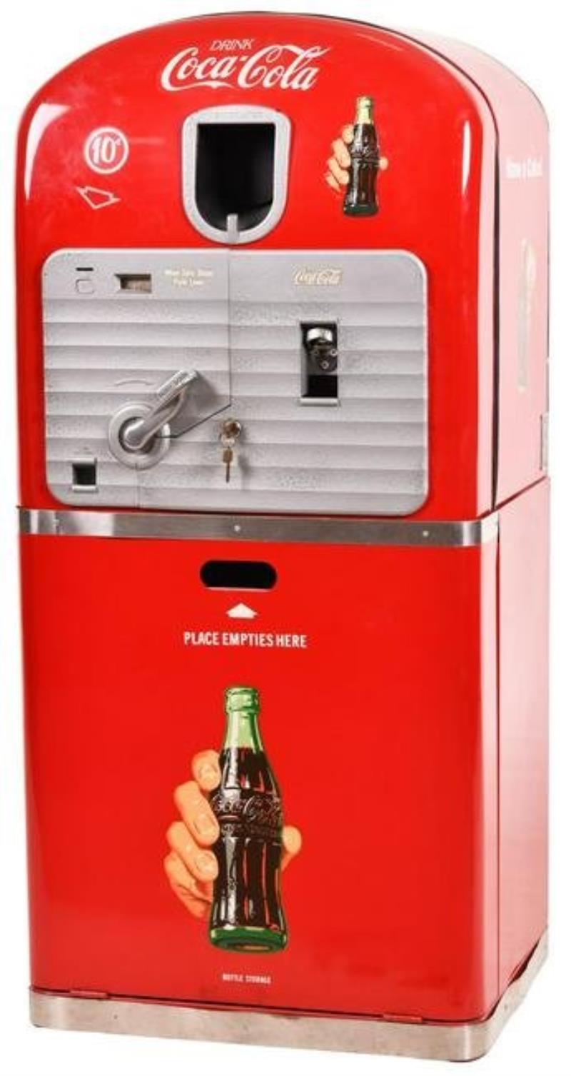 Coca-Cola 'Vendorlator VMC44' Vending Machine Coca-Cola 10-Cent vending machine; interior label 'DU PONT DULUX Enamel Finish'; from the Estate of Peter QuinnCondition: Good, in original condition with some new / over-painting; overall light wear consistent with age and normal use;…