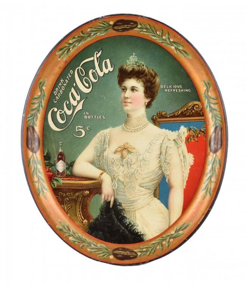 Coca-Cola Serving Tray: Rare "Lillian Nordica with Bottle" Oval Tray, 1905. Original antique Coca-Cola oval serving tray copyrighted 1904 by Aime Dupont N.Y., and manufactured by The Meek Company, Coshocton, Ohio in 1905. It is referenced by collectors as "Lillian…