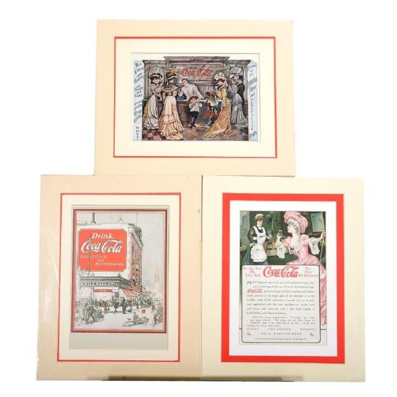 Ten Matted Coca-Cola Magazine Advertisements. Including advertisement from The Saturday Evening Post. {Dimensions of largest, 20 x 16 inches} [Condition: Some have creases, owners inscriptions.]