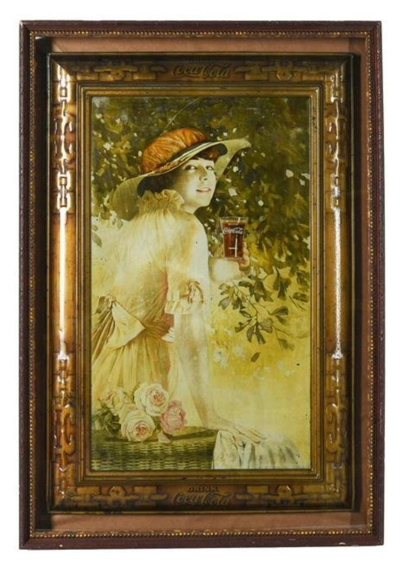 Coca-Cola 1923 calendar, pretty girl holding glass of Coca-Cola, nicely matted & framed, Exc. condition but appears to have replacement pad, 29.5"H x 16.5"W.