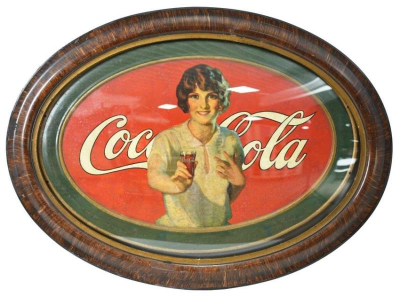Coca Cola 1903 Hilda Clark Holding Glass Large Oval Serving Tray Chas. Shonk