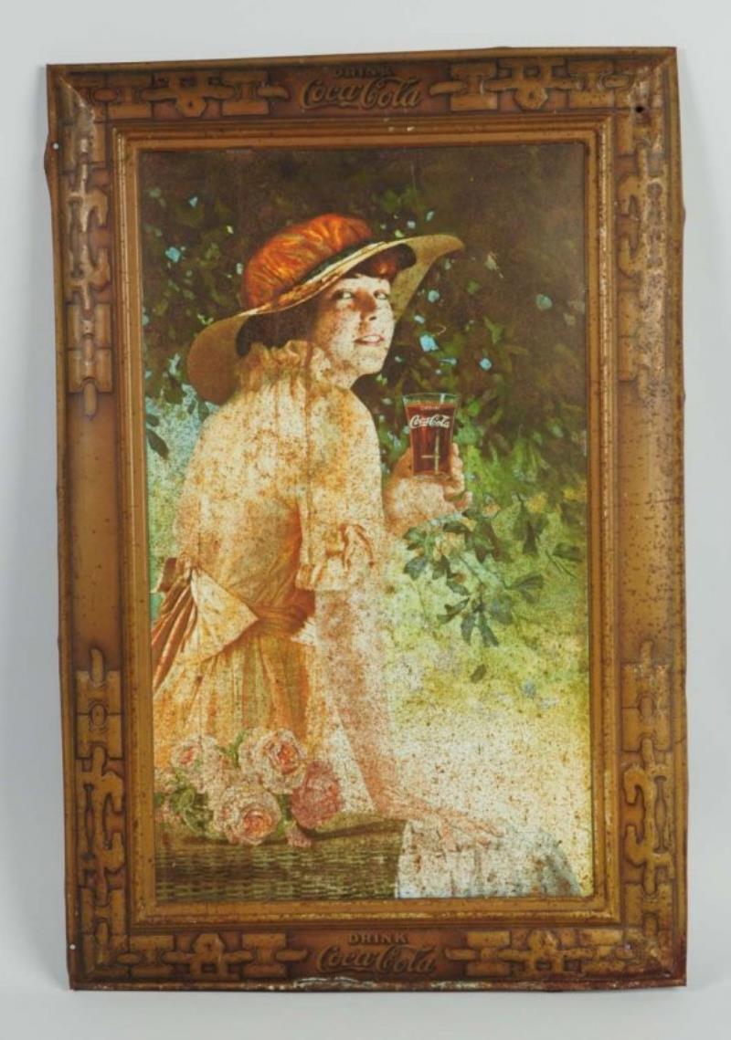 1916 COCA COLA ELAINE SELF-FRAMED TIN SIGN