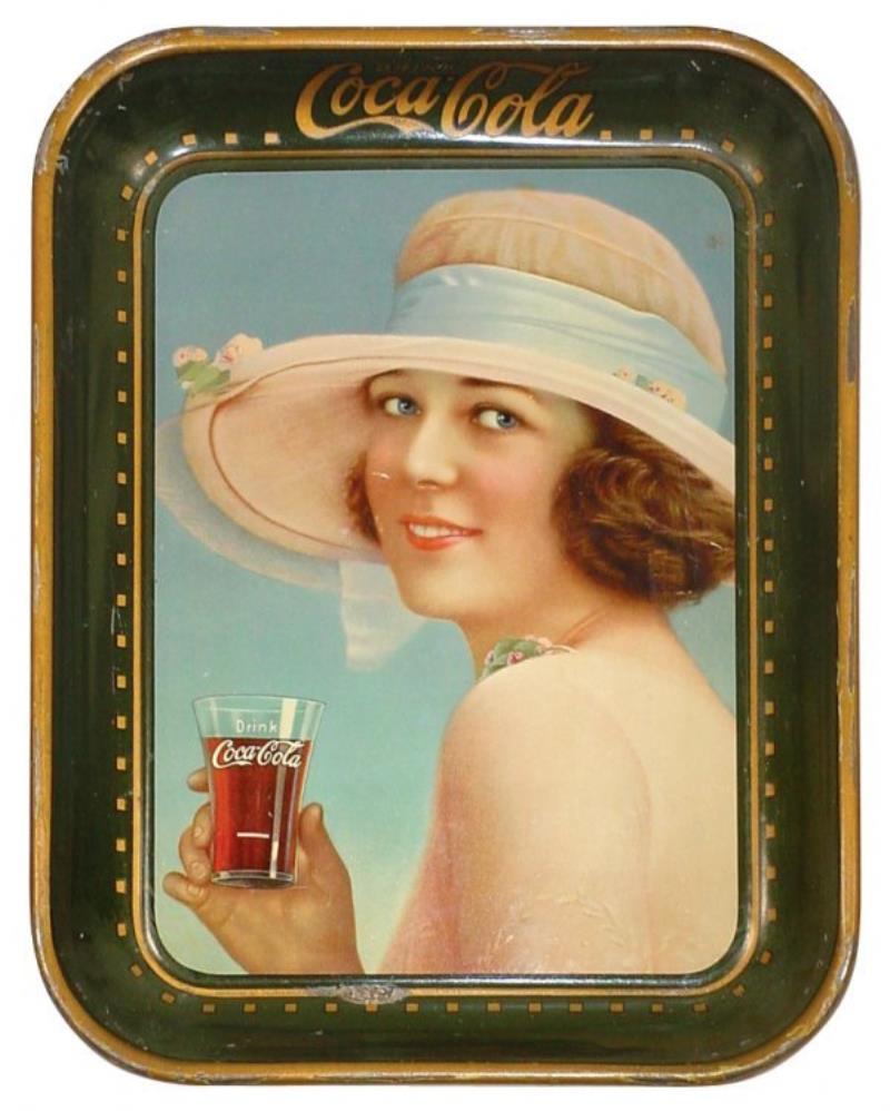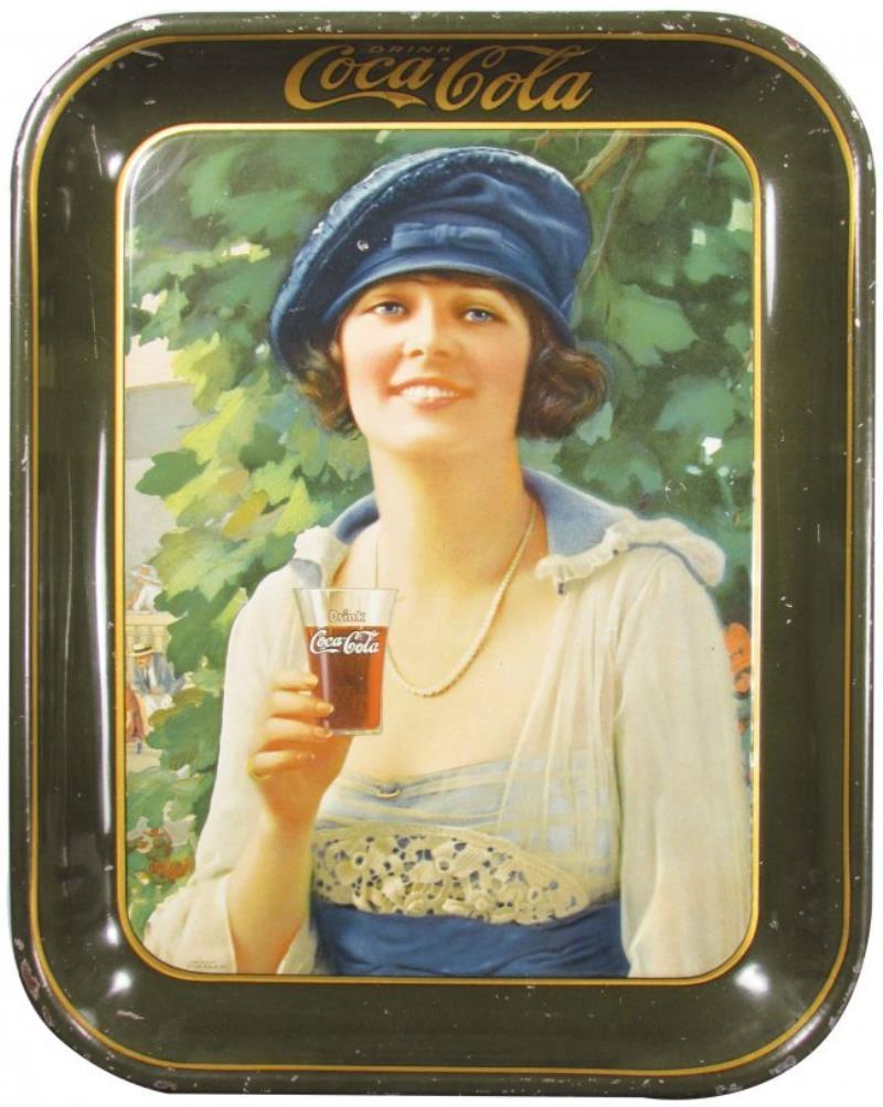 Coca-Cola serving tray, 1921, Lady w/Blue Hat, li