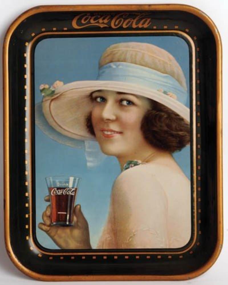 Coca-Cola Serving Tray, 1922, Pretty Girl /Hat & Glass