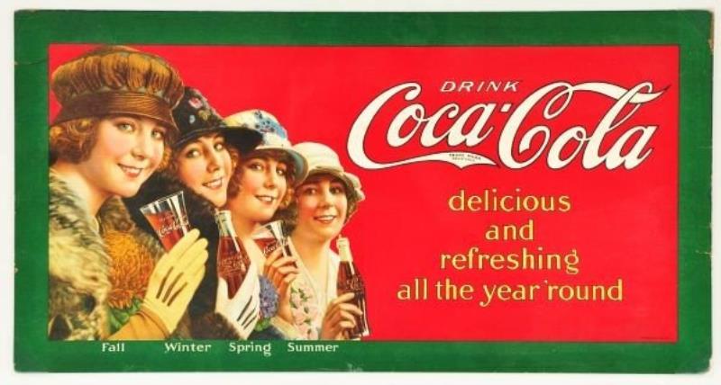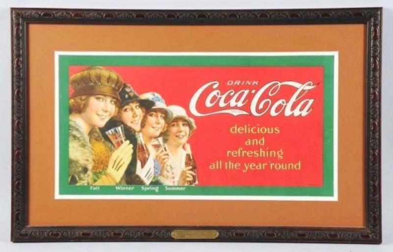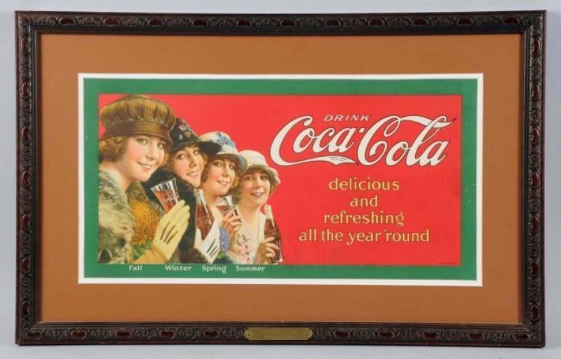 1923 Coca Cola "Four Seasons" Trolley Car Sign. Near mint condition. 19 3/4 X 9 3/4 inches.