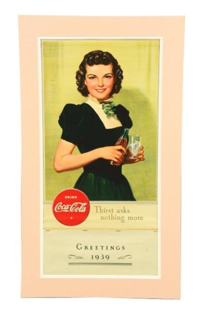 This calendar is shrunk wrapped onto a piece of foam board and has the August sheet from the calendar pad displayed. The calendar shows a beautiful woman holding a glass of Coca-Cola. It is in excellent condition with almost no…