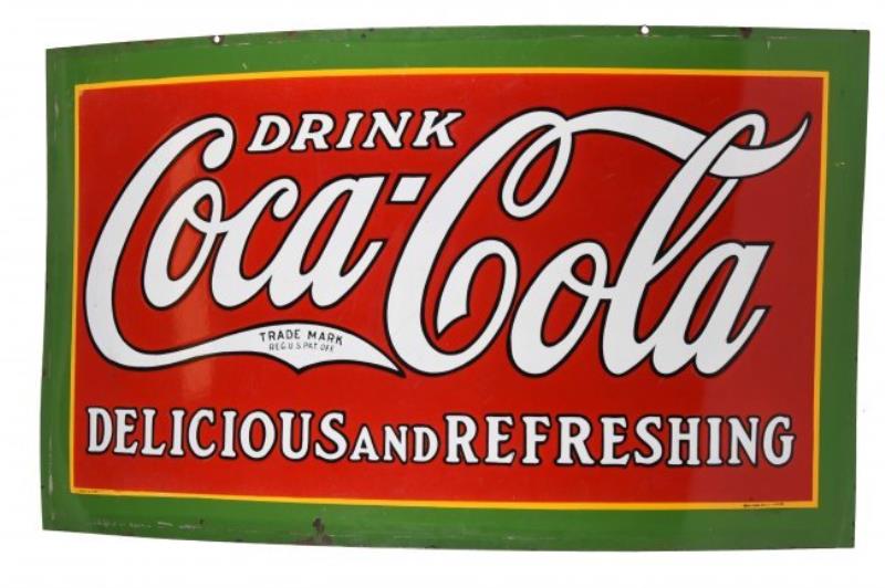 1930's Large Coca-Cola Porcelain Advertising Sign.