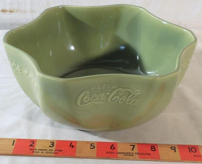 1930s Coca-Cola Vernon Ware Green Ice Bowl.