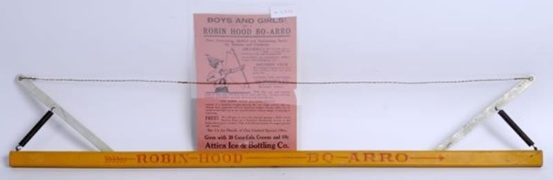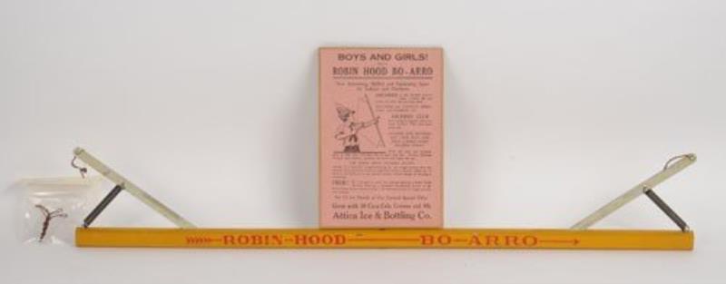 The Bo-Arro is 1930 to 1931; 31" long; very fresh clean and bright; never used; includes promotional sheet promoting the give-away of the Bo-Arro with the redemption of 30 Coca-Cola crowns and .69; no arrows included; only minor marks, no…