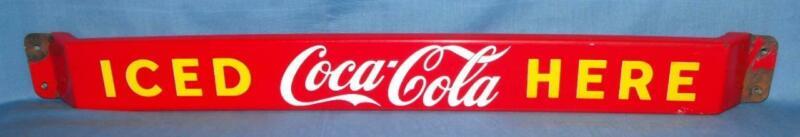 Coca-Cola Porcelain Door Push With Wrought Iron Ends. Measures 30" L.