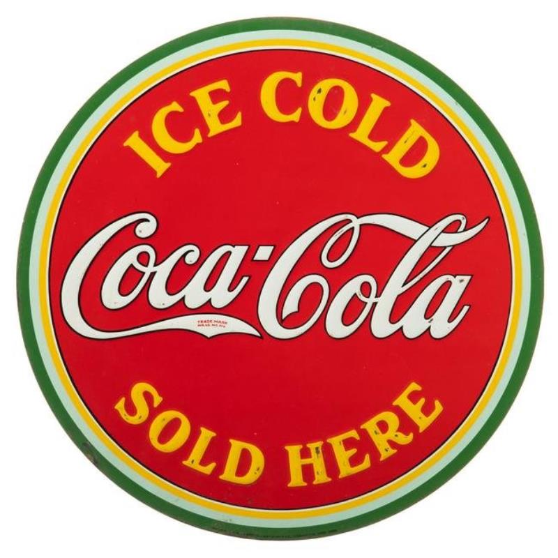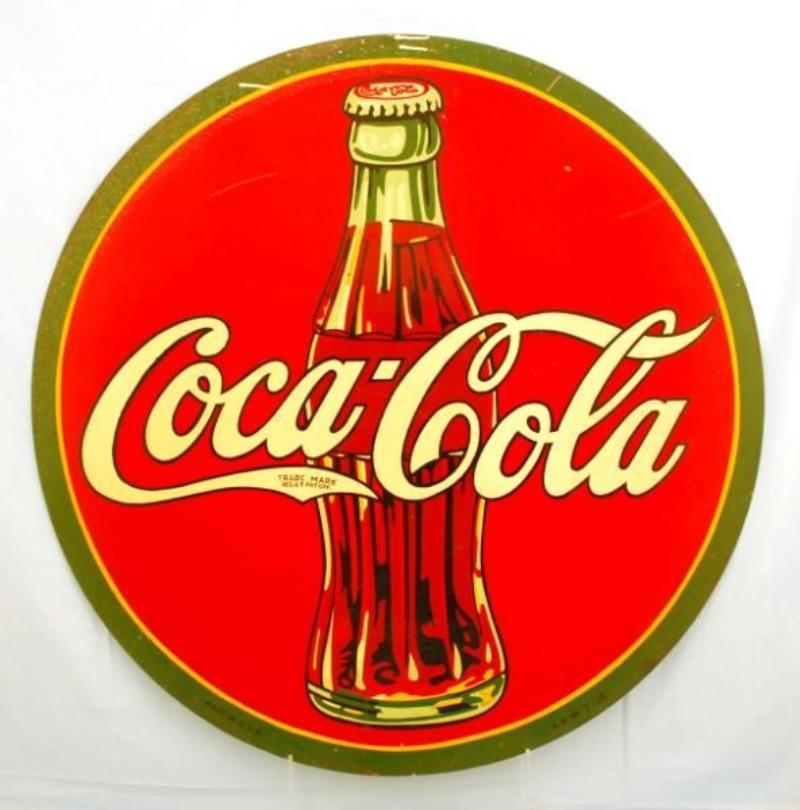 1938 Tin Classic Round Coca-Cola Sign.