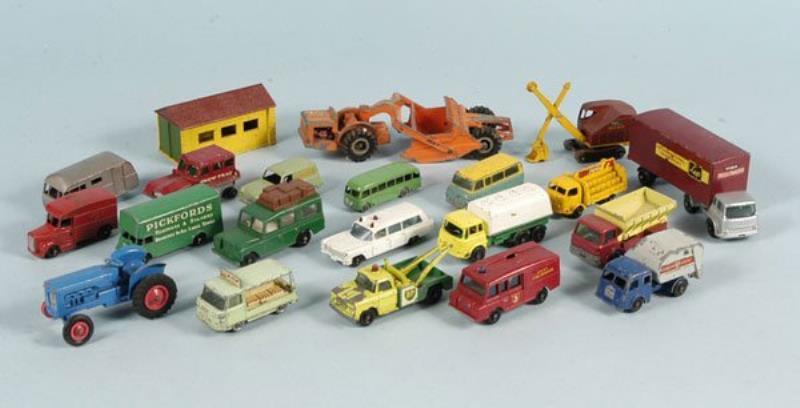 Matchbox Regular Wheel a large group of unboxed. To include No.37 Karrier Bantam Truck "Coca Cola", No.25 Bedford Petrol Tanker "BP", No.5 Double Deck Bus "Buy Matchbox Series", No.12 Land Rover Safari, Kingsize Fordson Tractor, Major Pack No.2 Bedford Articulated…