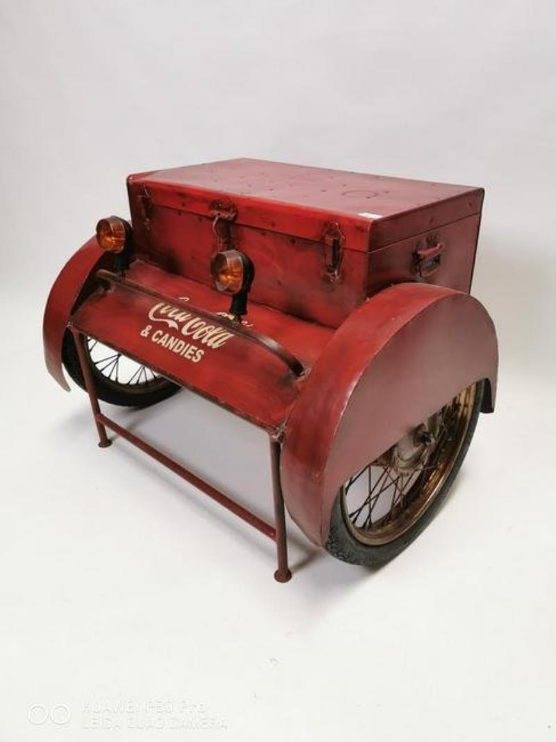 Metal Coca Cola and Candies trunk on wheels. { 64cm H X 86cm W X 62cm D }.