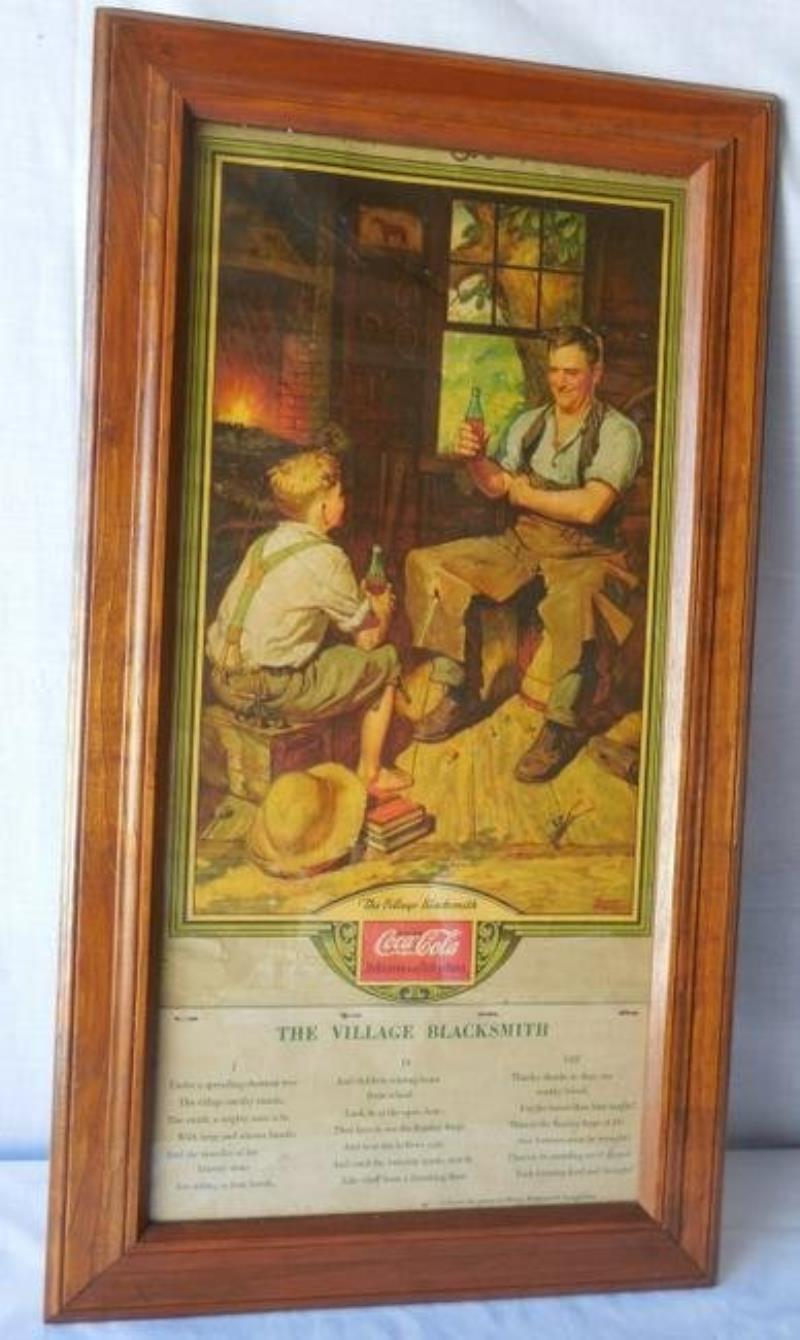 Framed Coca-Cola The Village Blacksmith 16 x 29 in.