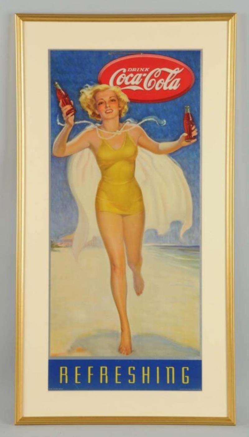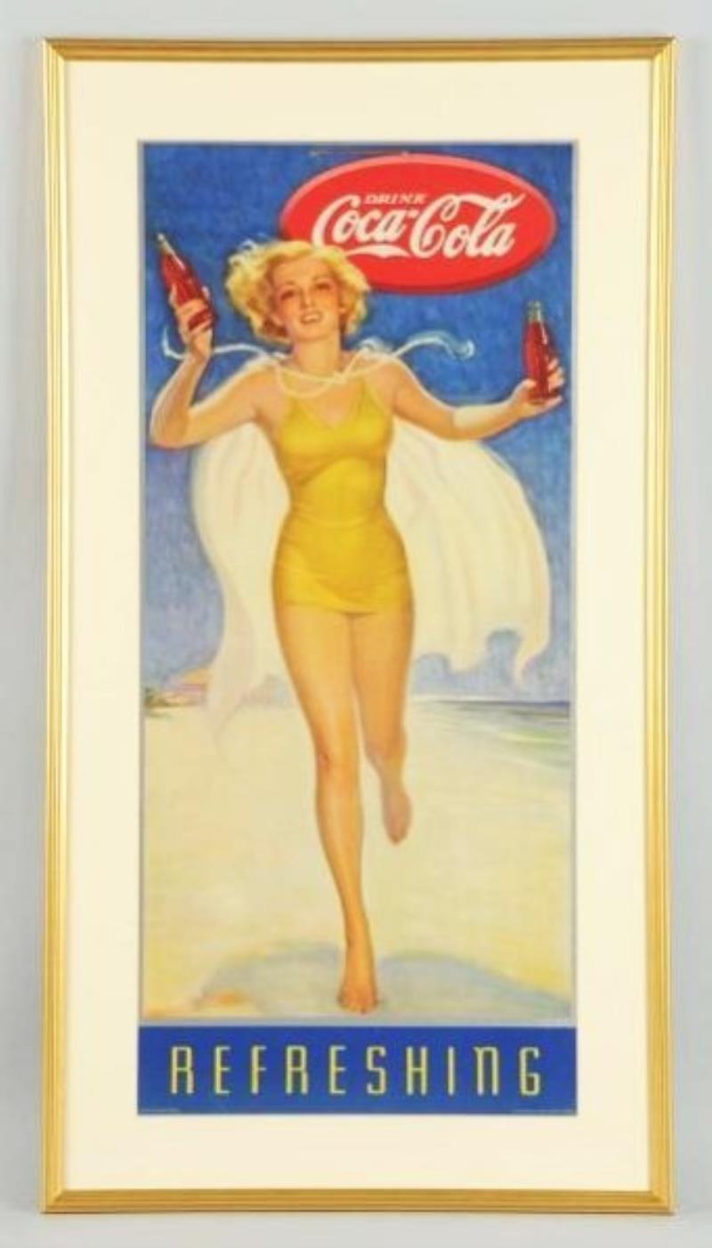 1937 Large Coca - Cola Bathing Girl Poster.