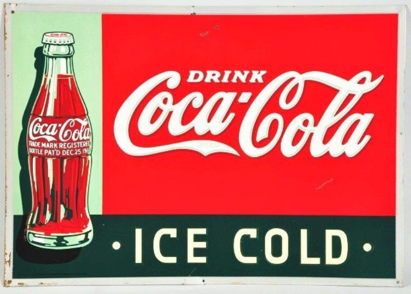 1937 Coca-Cola Embossed Tin Advertising Sign.