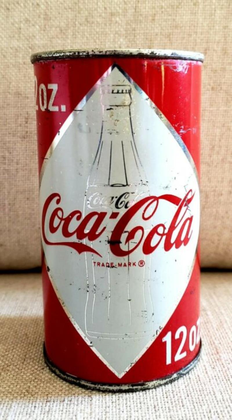 Vintage Coca-Cola Flat Top Soda Can 12 OZ.1950s Clean Graphics RARE LOS ANGELES