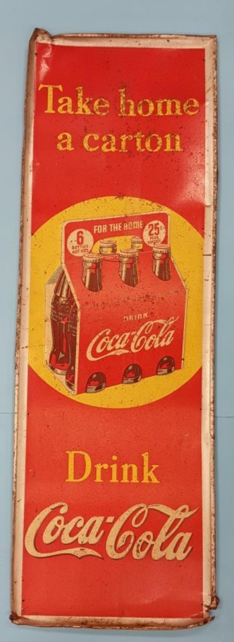 1938 Coca Cola Take Home A Carton Horizontal Tin Sign