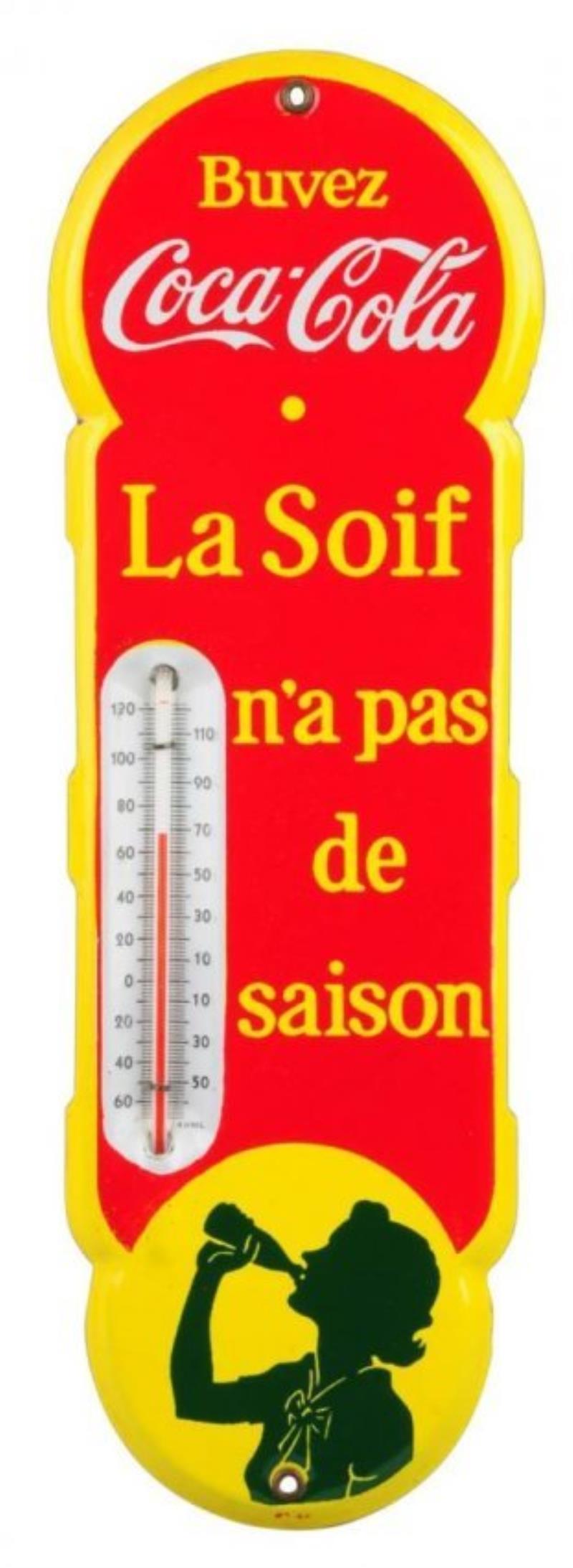 1939 Coca - Cola Canadian Porcelain Thermometer.