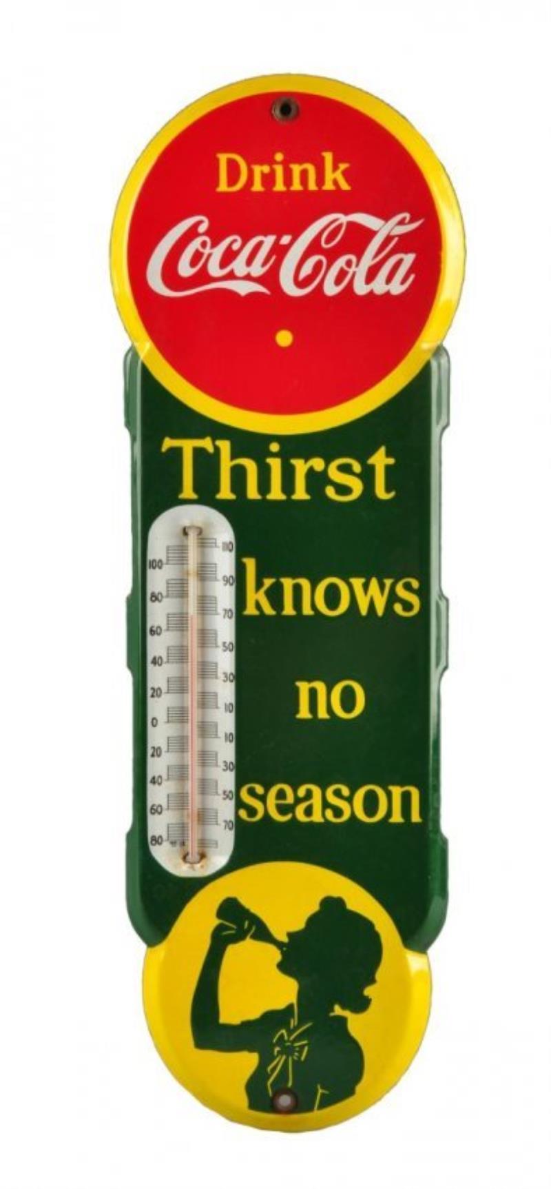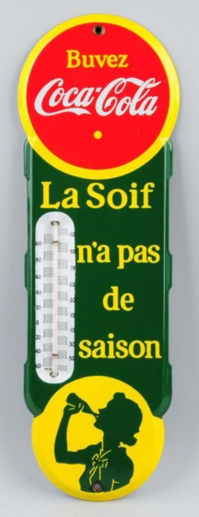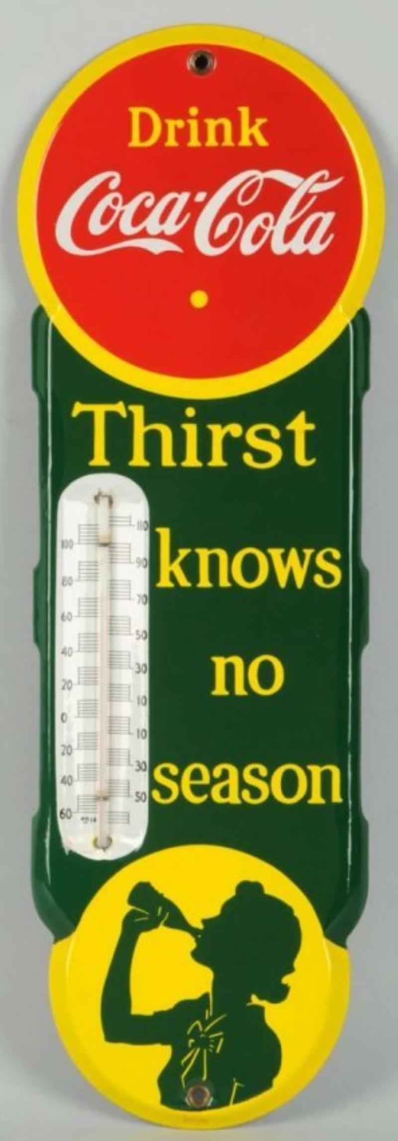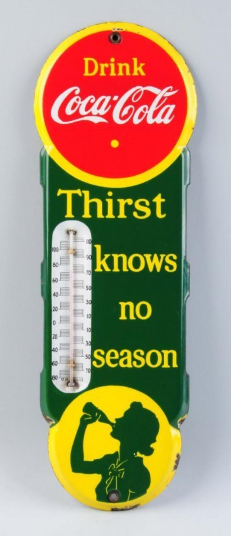 1939 Coca - Cola Canadian Porcelain Thermometer.