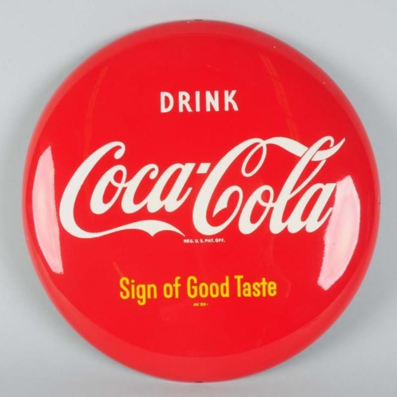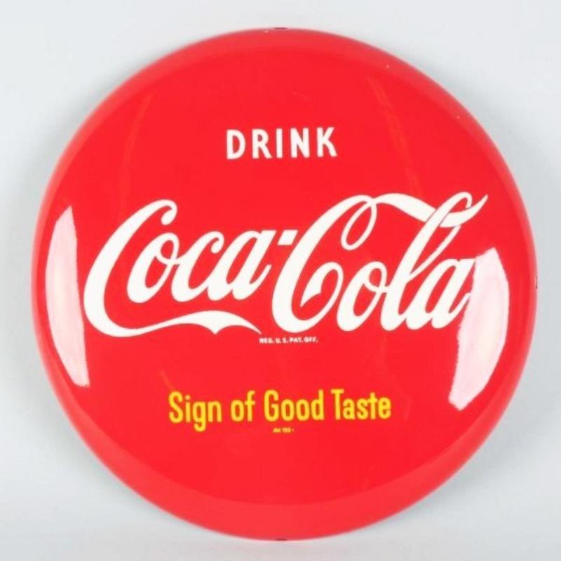 A very difficult sign to ever encounter. This may be the only second one we have ever seen. Displays very well but has general overall wear with some shallow dents, some paint chips on both sides and some light to moderate surface wear. 7 - 7.5. Condition (Very Good). Size 15" x 14".