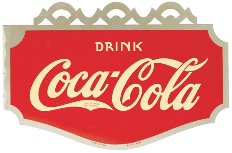 Beautiful 1937 Coca-Cola Cutout Tin Flange.