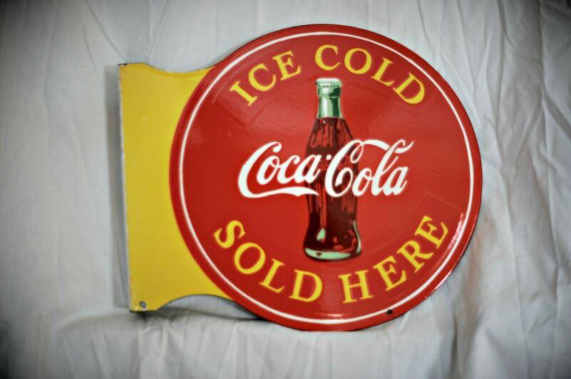Beautiful Porcelain Double Sided Flange Coca-Cola Sign 16" X 14"
