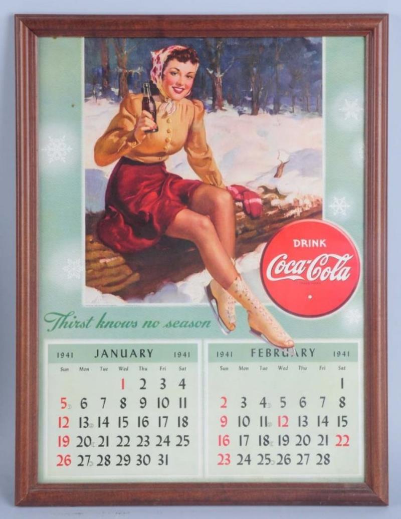 FRAMED COCA-COLA 1919 CALENDAR TOP WITH 1916 CALENDAR.