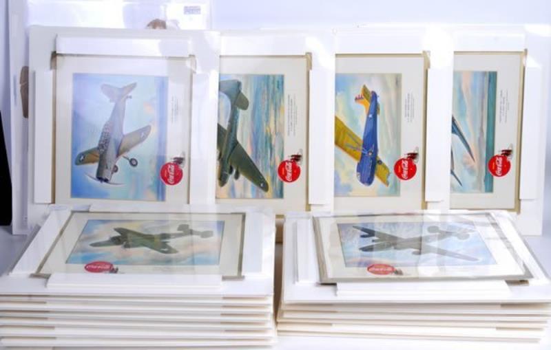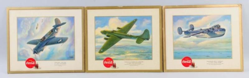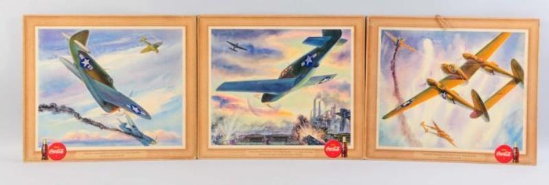 Coca-Cola airplane signs (10), c.1943, Grumman TBF-1 Avenger, Lockheed LP-28 Lightning, Brewster SB2A-1 Buccaneer, Consolidated PBY-5 Catalina, Consolidated B-24 Liberator, Douglas B-19, Guardian of a Hemisphere, Consolidated PB2Y-2 Coronado, Douglas SBD Dauntless, Curtiss P-40-F Warhawk & Vought-Sikorsky F4U-1 Corsair; cdbd…