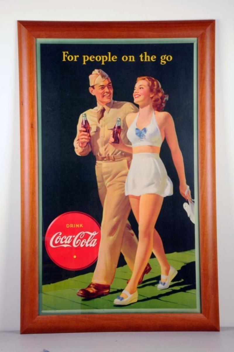 DESCRIPTION: 1944 Coca-Cola lithograph poster entitled "Mind reader!". Marked lower left "Copyright, 1944 - by The Coca-Cola Company". Marked lower right "Litho. in U.S.A. by Edwards & Deutsch Litho. Co., Chicago". Black frame. MEASUREMENTS: 56" x 27". Overall with frame…