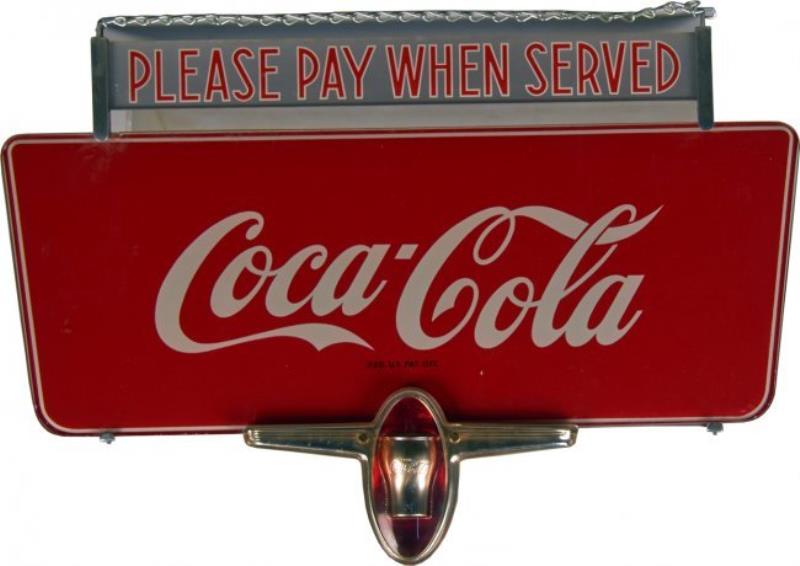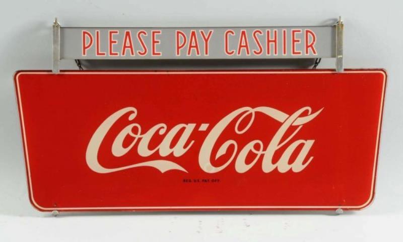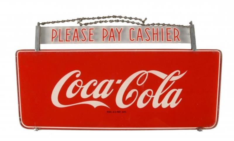 Original Coca Cola Glass & Plastic Hanging Advertisement Sign " Please Pay When Served", B-78 - approx. 18" x 13"
