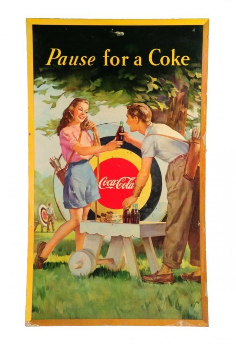 1942 COCA-COLA LARGE VERTICAL CARDBOARD POSTER