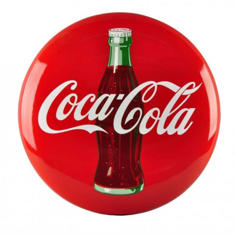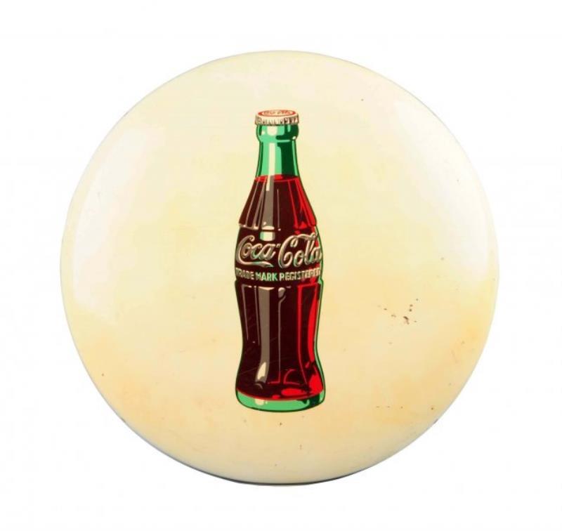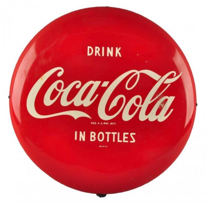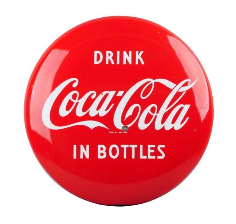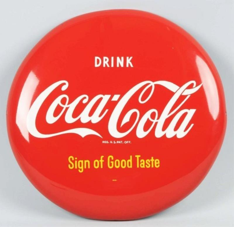 1950’s Coca-Cola Tin Button Sign With Bottle.