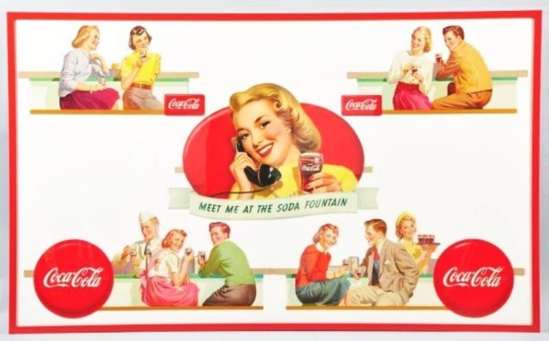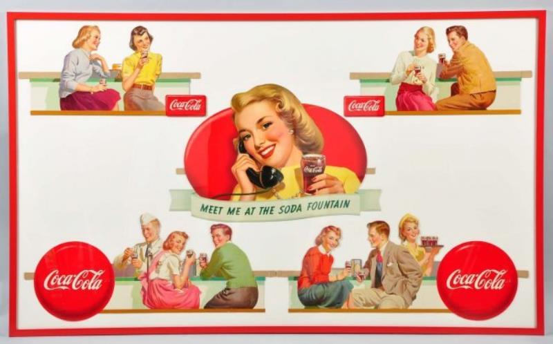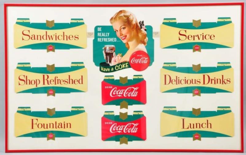 This display comes with a diagram, a letter from Coca-Cola as well as part of the original packaging. The colors are very strong on this piece. There are some bend marks, rubs and minor edge wear. (Very Good). Largest: 38''…
