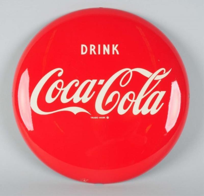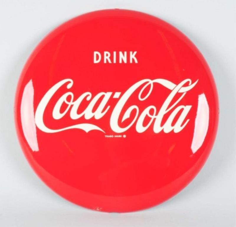Pristine 1950s Coca-Cola Tin Button Sign.