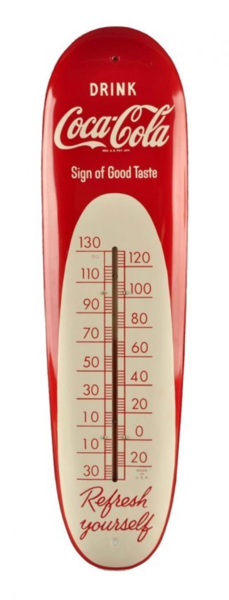 Tin 1950s Coca-Cola Cigar Thermometer.