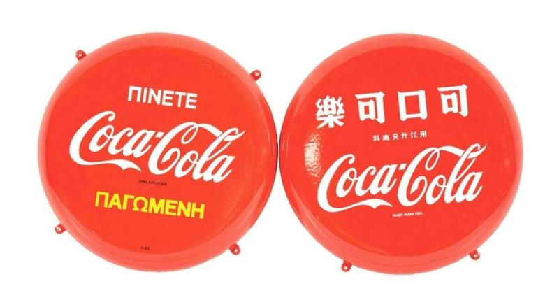 PORCELAIN FOREIGN COCA-COLA BUTTON SIGNS.