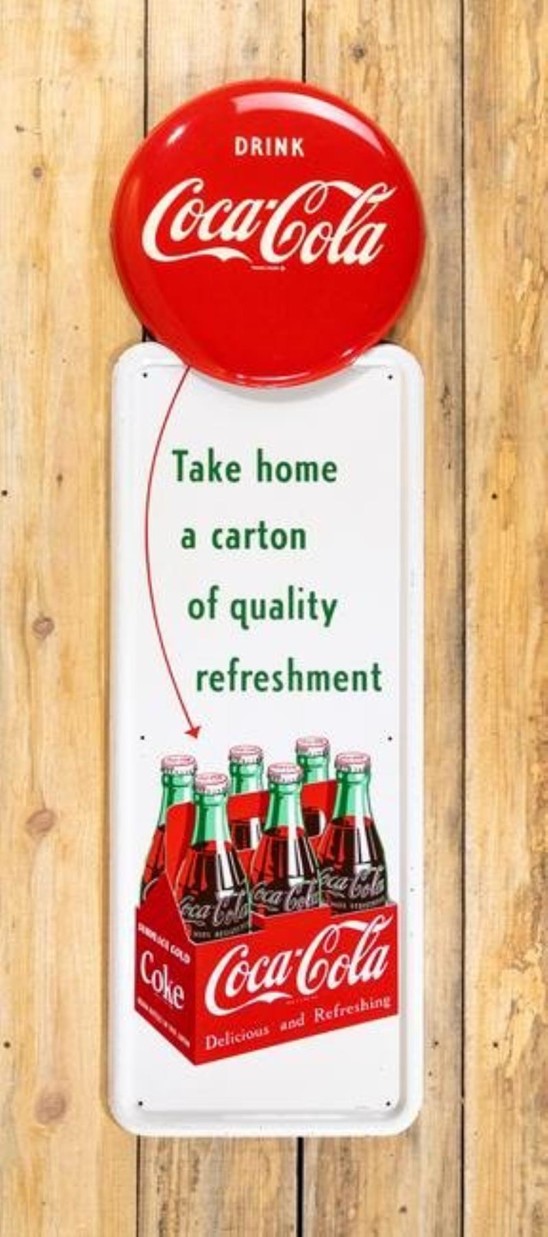 1951 Coca-Cola Pilaster SS Metal Sign & Button TAC 9