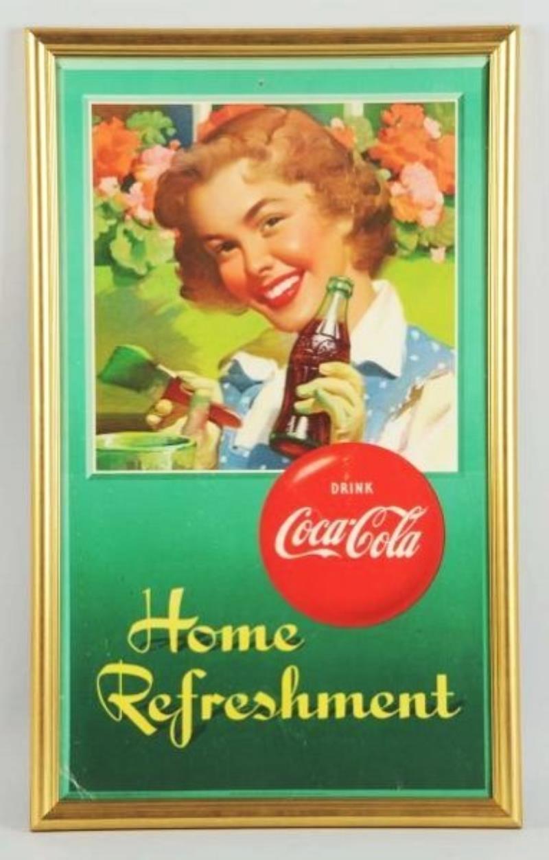 1951 Coca-Cola Cardboard Poster & Gold Frame.
