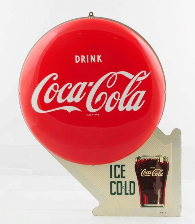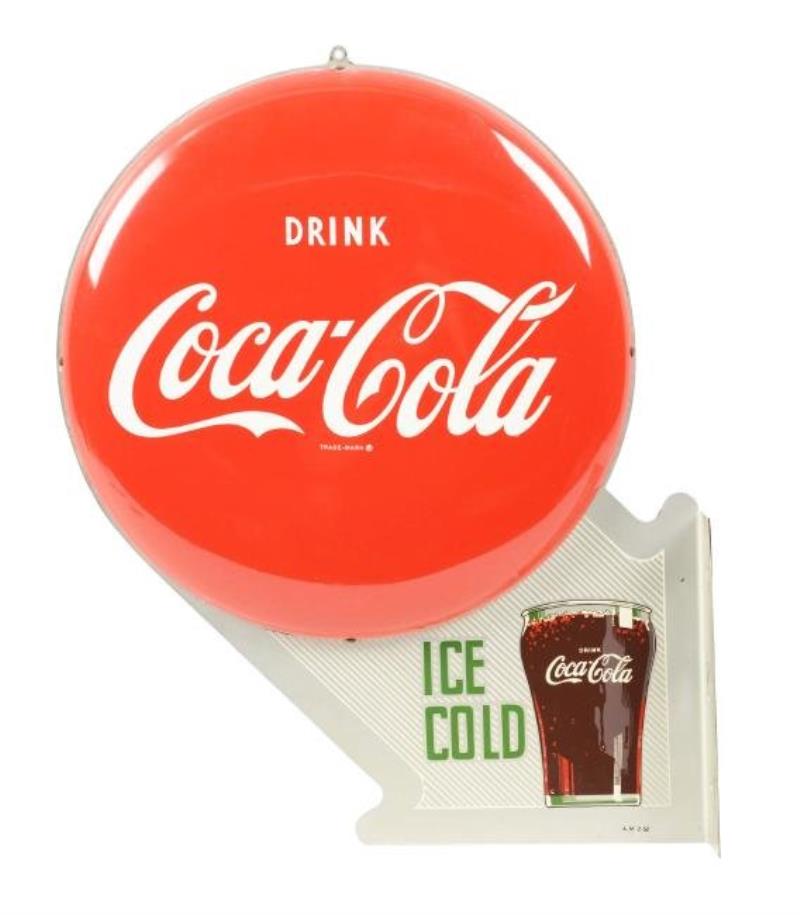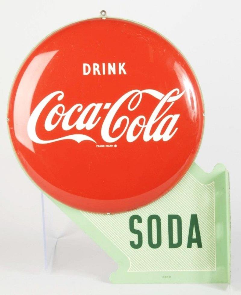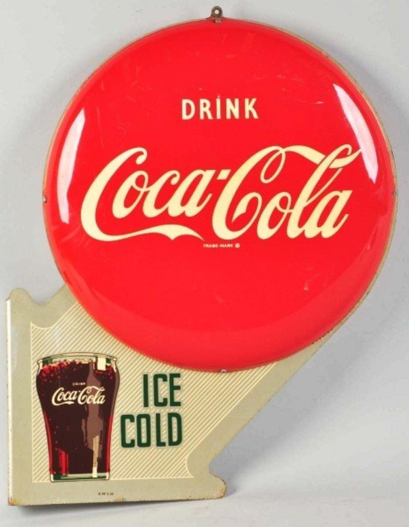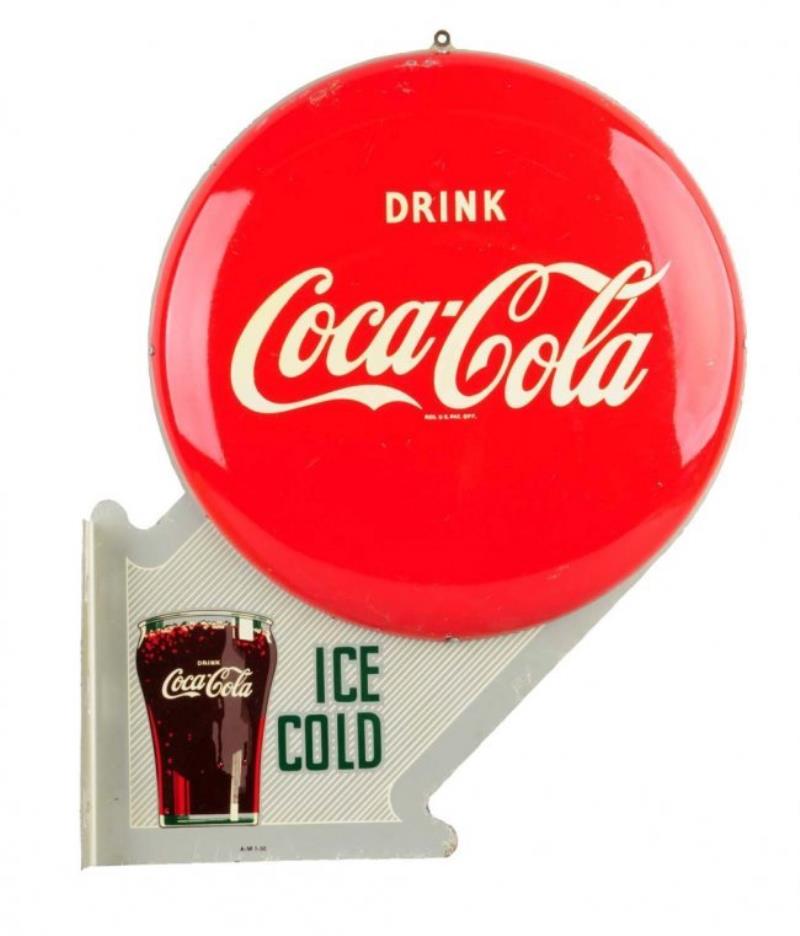 1950 Tin Coca-Cola Double Button Flange Sign.