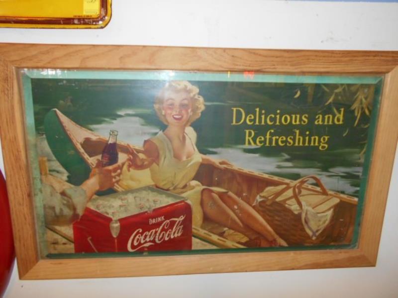 1953 Coca Cola Cardboard Girl in Canoe Framed