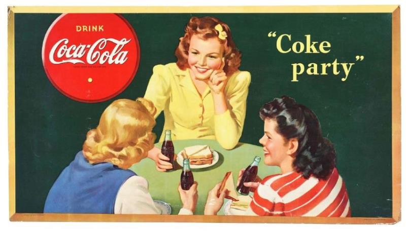 Coca-Cola "Coke Party" Cardboard Advertising Sign.