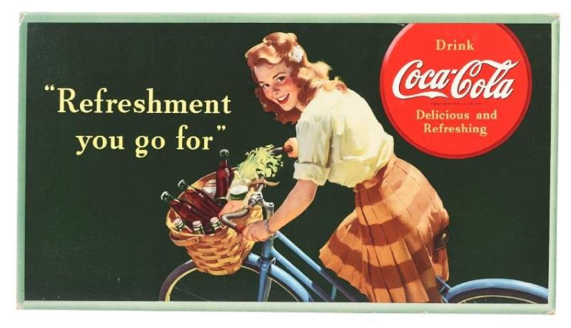 Sign is titled "Have a Coke". It was made by McCandlish Litho Company. The colors are very strong. There is some minor corner wear and a folded corner on the bottom left. The field is rather strong with a few…
