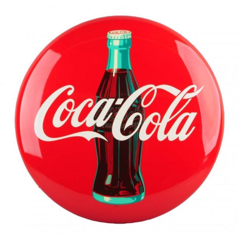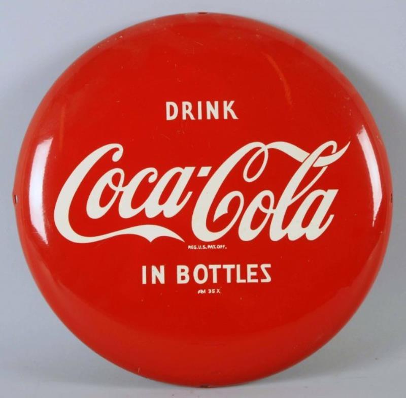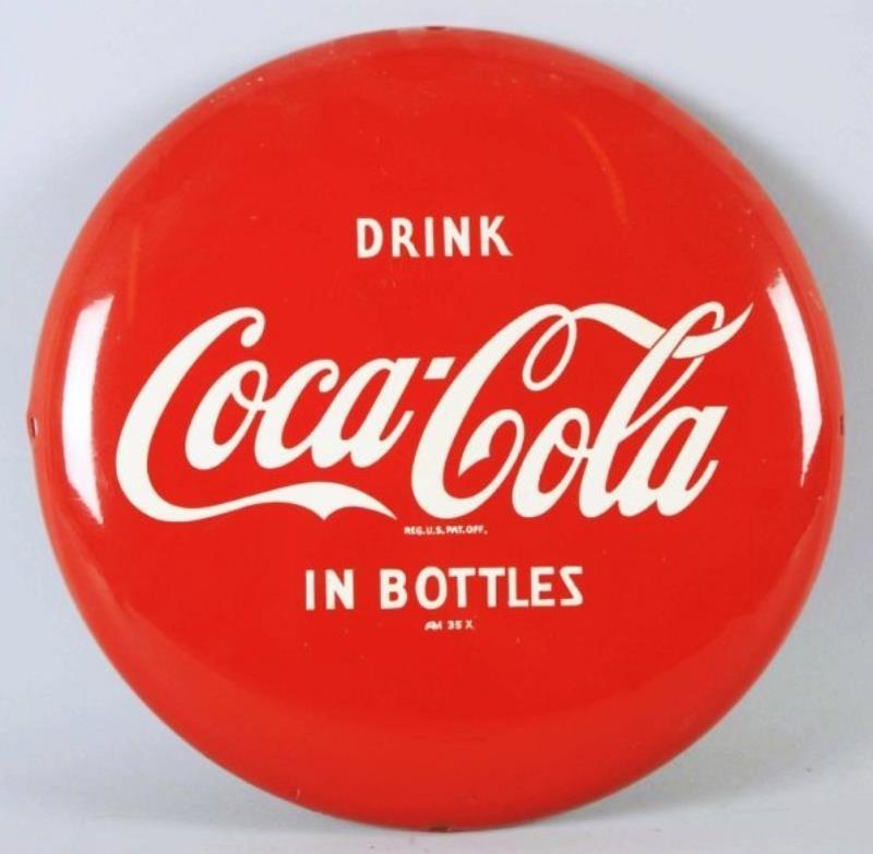 Drink Coca Cola Tin Button Sign W/ Hand Painted Tin