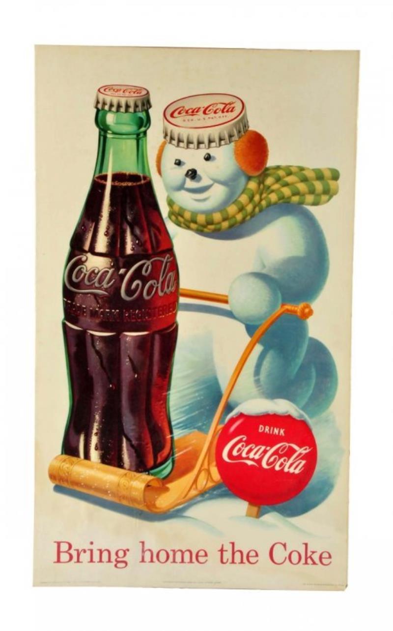1957 Large Coca - Cola Snowman Poster.