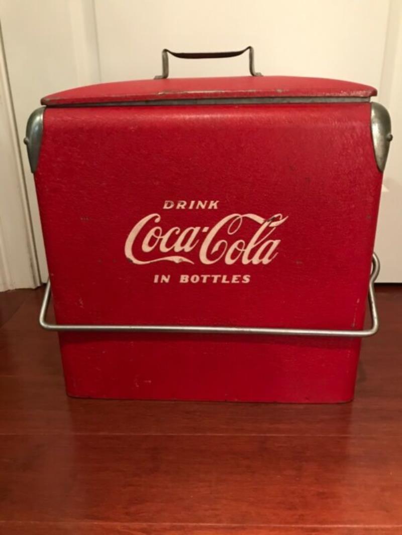 This is an older RARER version of the Acton Coca Coca picnic cooler that does NOT include the words "In Bottles.". It does have a bottle opener on the side.