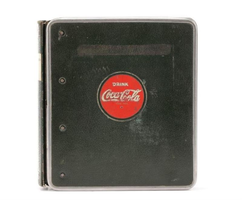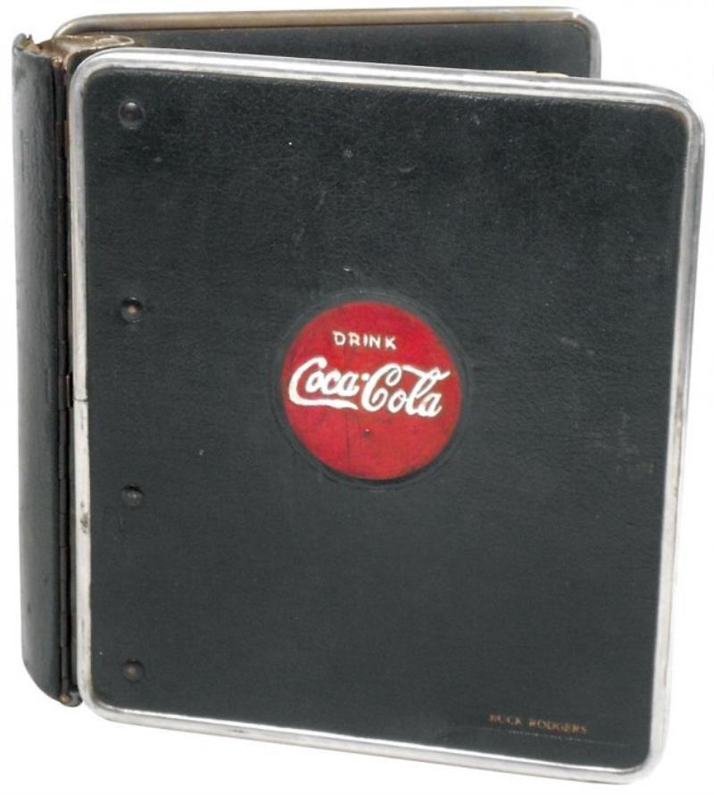 Coca-Cola salesman's sample merchandising handbook, c.1940, Very Rare, colored lithos of many cdbd, metal & porcelain signs, custom builds, coolers & carton displays, a "must have" for the advanced collector, VG cond, 9.5"H x 9"W.