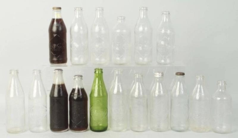2 12 oz. and a 16 oz. screw cap bottle. Wear and label chipping.Condition (Very Good - Excellent). Size Largest: 8" T.