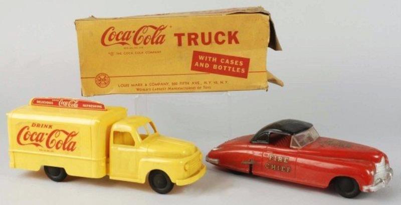 Lot of 2 Plastic Marx Coca-Cola & Fire Chief Toys